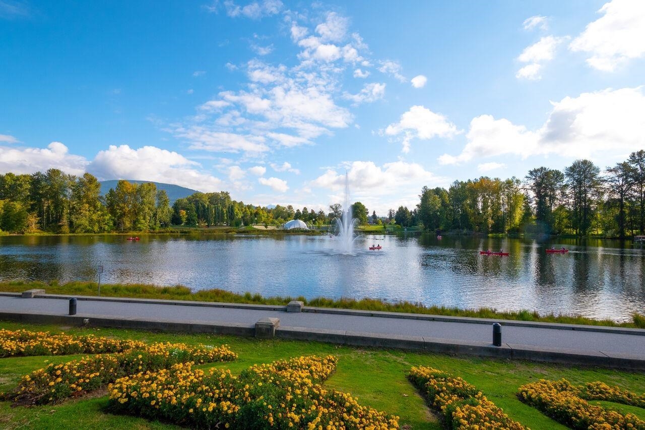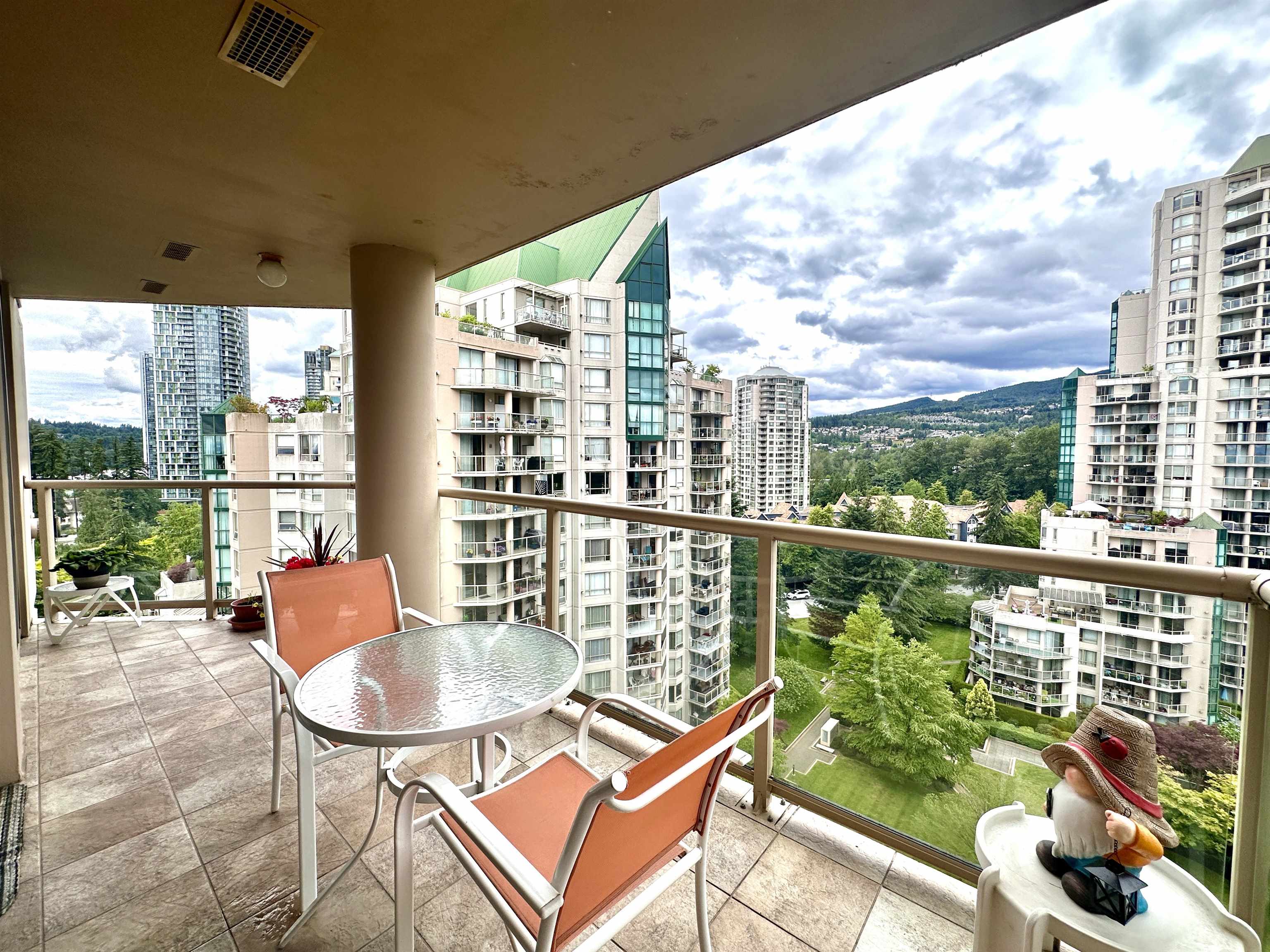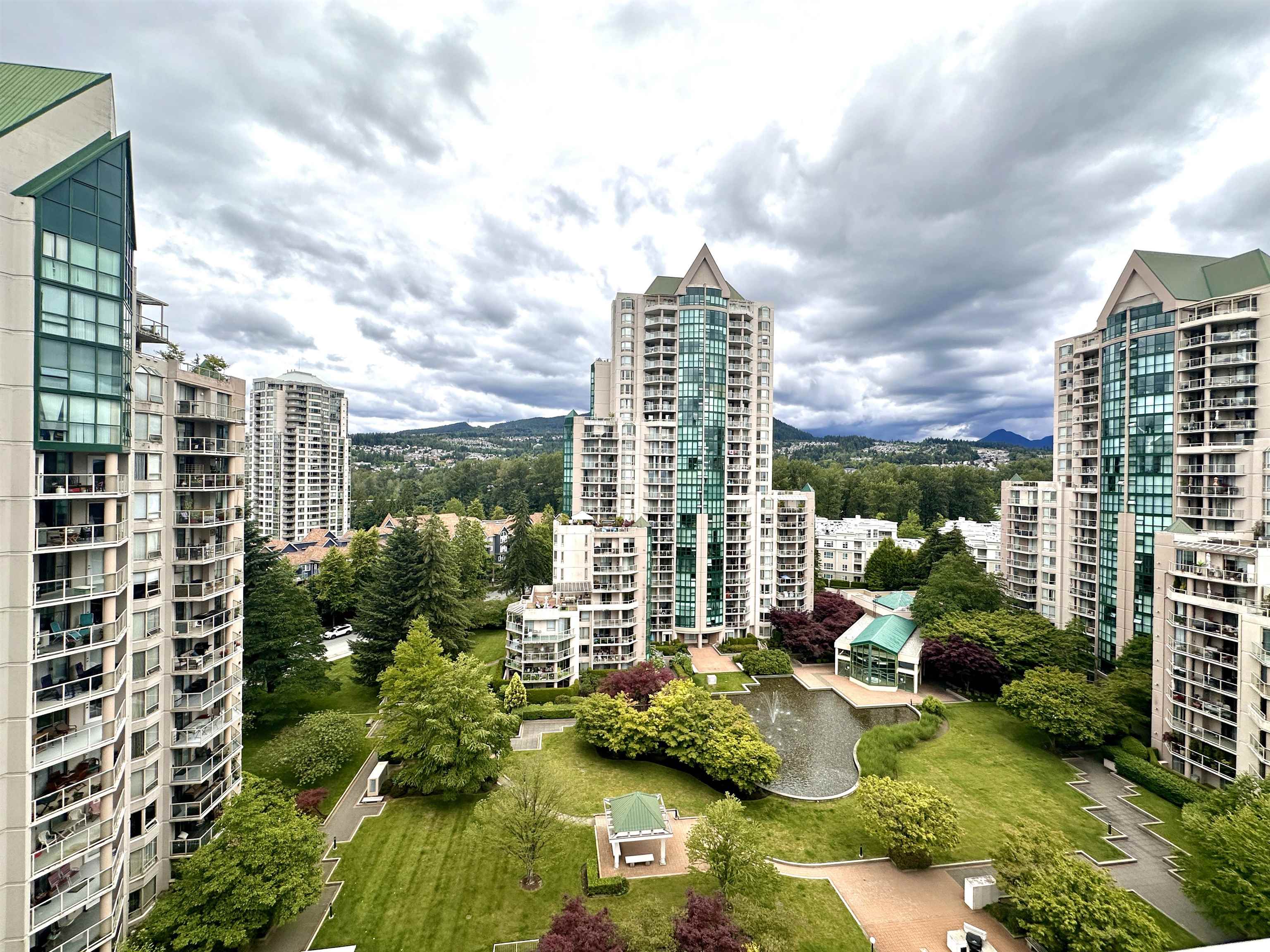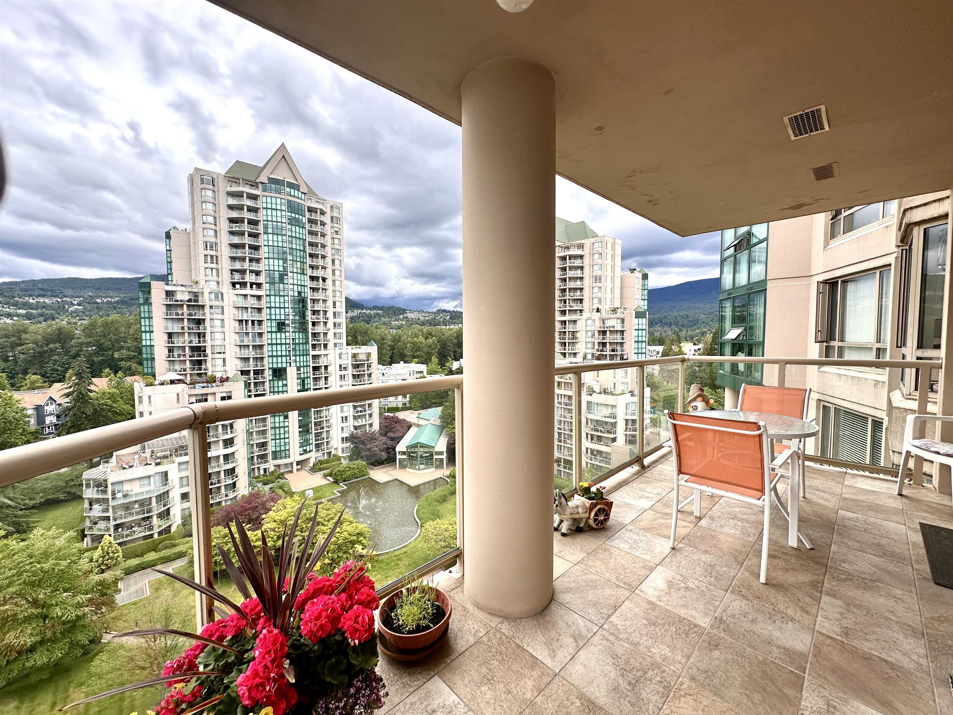 Bosa Built! Spacious 2 bed/2 bath 1259 sq ft corner unit facing NW overlooking stunning manicured, botanical gardens with large water feature/fountain! Bldg just repiped. Updated kitchen w/granite counters, new cabinetry, S/S appl & separate eating area. Sprawling dining/living rms with gas f/p incl in maint. Large patio with 2 accesses. Enjoy the sparkling lights frm Westwood Plateau. 2 park/large locker. EV charging avail. Fully equipped exercise rm, pool, whirlpool sauna, racquet ball court & lounge. Across from French Immersion & steps to LaFarge Lake, Coq Centre, Arts Centre & Evergreen Line. 2 pets any size/rentals allowed BRAND NEW WATERPROOF LAMINATE FLOORING INSTALLED & FRESH PAINT! Open House Sat Jan11, 12-2